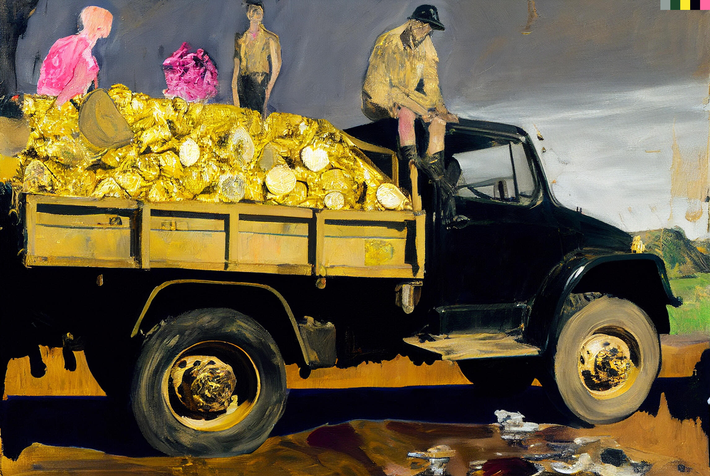 It was a typical morning for Jake. He woke up at his usual time of 6:30am, had breakfast, and got ready for work. But as he was walking out the door, something caught his eye. It was a glimmer in the grass, just outside his front porch.At first, Jake thought it was just a piece of foil or something, but as he got closer, he realized it was something much more valuable - it was a gold nugget!Excitedly, Jake picked up the nugget and looked around. To his amazement, there were more gold nuggets scattered all over his back yard!Jake quickly got to work, picking up as many of the nuggets as he could. After about an hour of collecting, he had filled already a bucket with the shiny gold.But Jake wasn't satisfied. He had a hunch that there was more gold to be found, and he was determined to find it. So he got in his truck and a few friends and they started looking for more gold nuggets. Lucky them, the stuff was all over the place. They found even bigger nuggets, and they kept picking them up until his truck was almost full.By 10am rolled around, Jake and his friends had collected more gold than they had ever dreamed of.